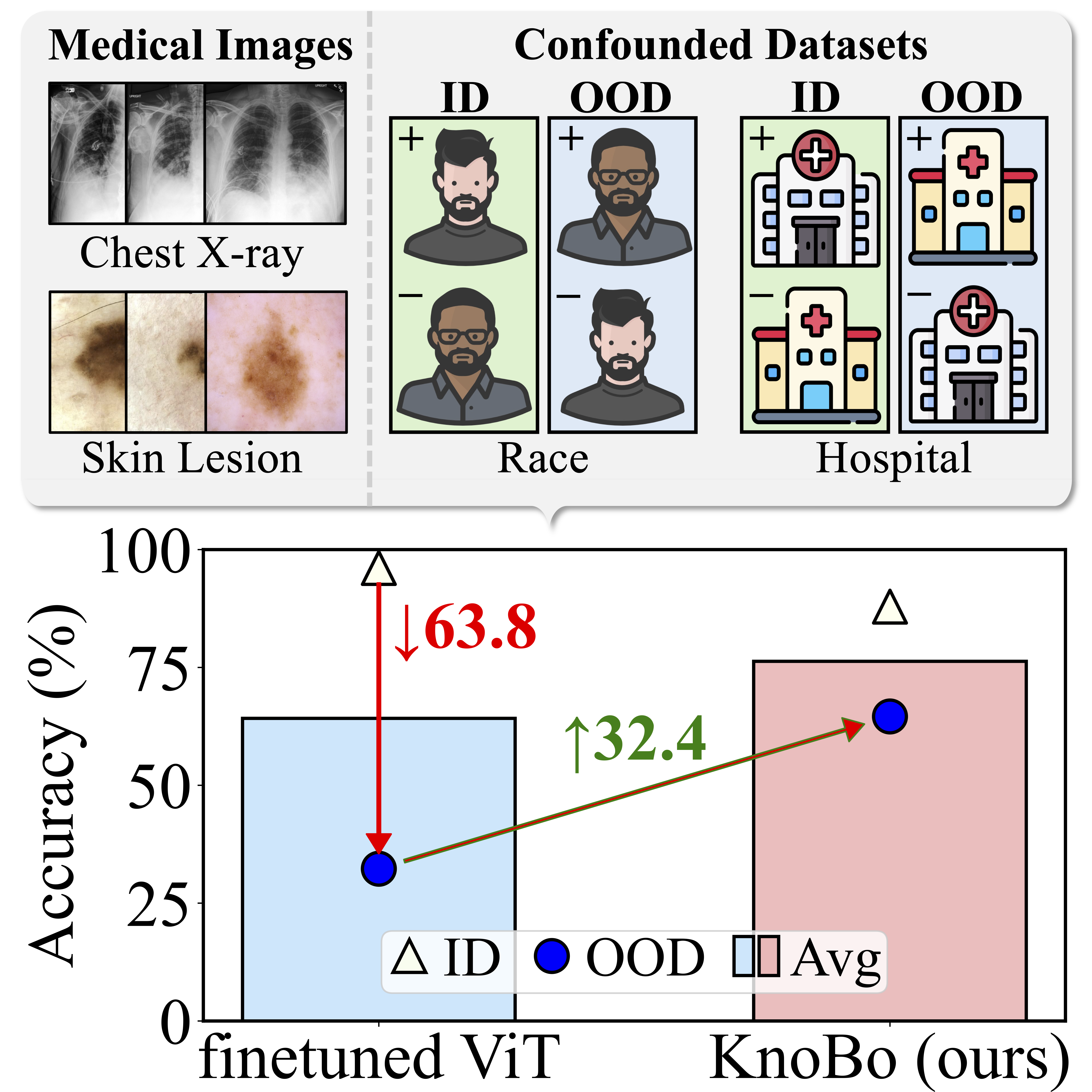 We introduced KnoBo, incorporating medical knowledge priors into interpretable models to enhance robustness against distribution shifts in hospitals, demographics, sex, and race, etc.